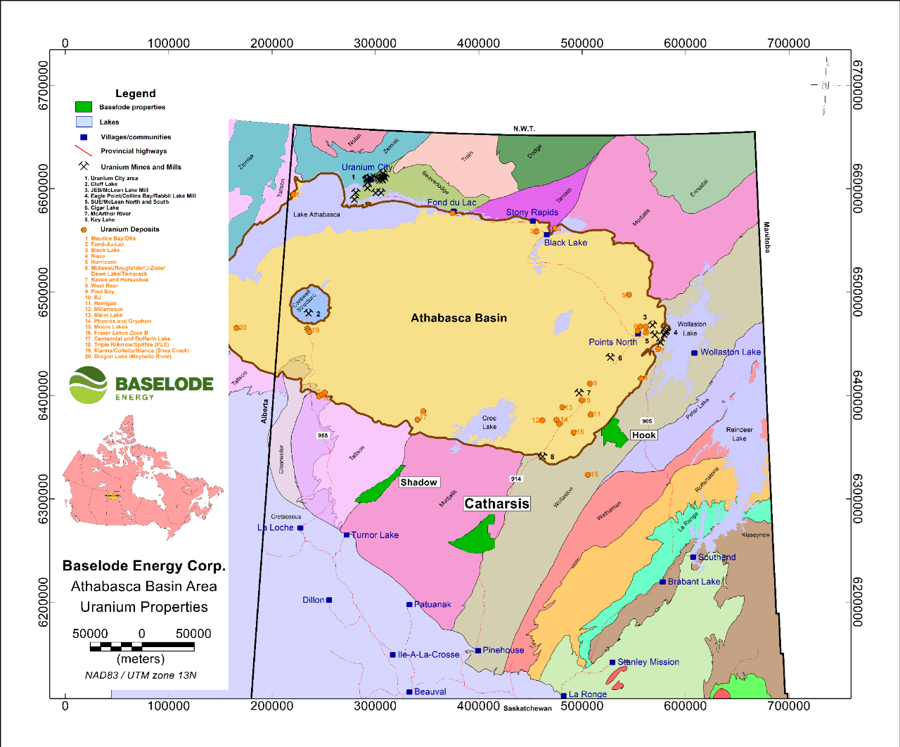 “Catharsis complements Baselode’s strategy of exploring for near-surface, structurally-controlled, basement-hosted, high-grade uranium deposits in under-explored areas outside the perimeter of the Athabasca Basin. This acquisition doubles our current land holdings, and we believe Catharsis demonstrates promise for the discovery of a mineable uranium deposit. This acquisition is representative of our continuous efforts to evaluate the Athabasca area for prospective targets. Our criteria include favourable regional geophysical interpretations that incorporate classic Athabasca uranium exploration techniques merged with common gold and copper exploration techniques to explore structural-controlled alteration systems.  Investors can expect further acquisitions in line with our thesis and more information on the technical rationale for the acquisition of Catharsis as we ramp up our exploration plans for Spring/Summer,” said James Sykes, CEO and President of Baselode.
